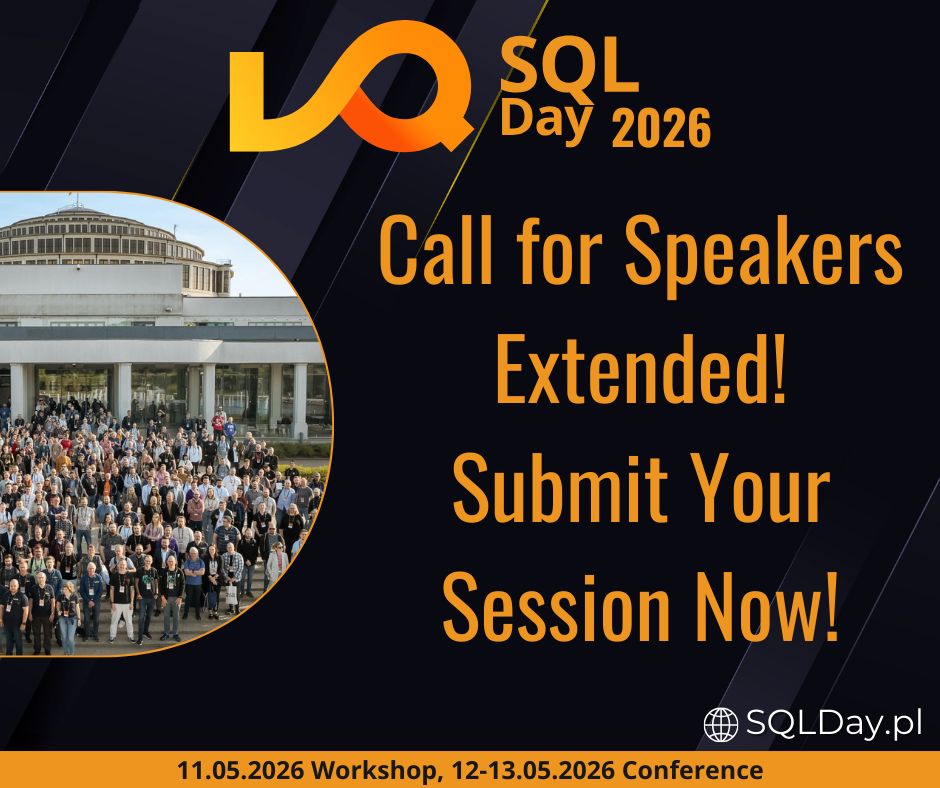 Mamy dobrą wiadomość! Call for Speakers na SQLDay 2026 został oficjalnie przedłużony do KOŃCA ROKU 🥳⏰Jeśli...